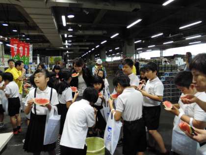 学校を午前7時55分に出発し、午前9時のせりを見学しました。