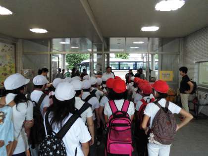 5年生が午前7時55分に東鉢伏高原に向け、学校を出発しました。