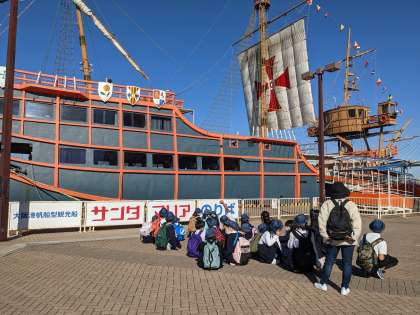 5年生は、サンタマリア号に乗り、船長さんの話を聞いたり、ロープワークをしたり、救命胴衣について学んだりしました。その後、一般のお客さんと一緒に45分のクルーズを楽しみました。天気がよく、風がとても気持ちよかったです。貴重な体験と学習をすることができました。関係者の皆様、ありがとうございました。