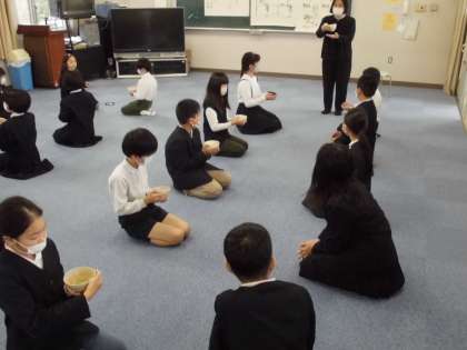 2時間目、5年生は地域の皆様にお茶の作法を教えていただきました。お菓子やお茶の出し方や下げ方、礼の仕方などを教えていただきました。子どもたちは姿勢を正してお茶の作法を学習することができました。
