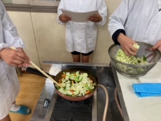 6月2日(金)の1、2時間目に、6年生の調理実習「野菜炒め」がありました。