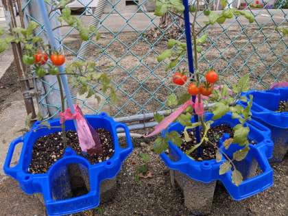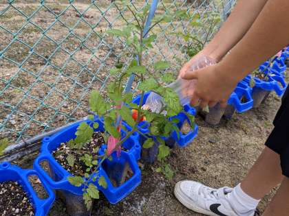 2年生が、毎日水やりをしているミニトマトが育ってきました。