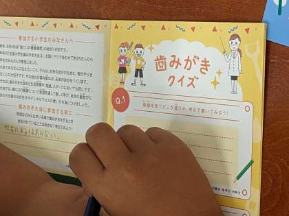 5年生は全国はみがき大会に参加しました。クイズを解いたり、1mgの歯垢には、2〜3億個の細菌がいることなどを知りました。