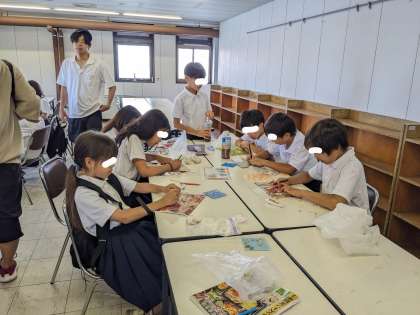 海岸散歩の時に拾った貝殻を使って、思い出に残る作品づくりをしました。とても素敵な作品が出来上がりました。
