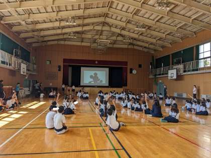 今朝の児童集会で、シルエットクイズをしました。「わかった!」と元気よく手をあげる子どもたち。シルエットが半分しか見えないものもありましたが、子どもたちはすぐにわかっていました。