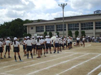 全校児童による大玉送りは1年生から6年生まで、みんなが協力してがんばりました。