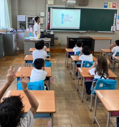 今日は、動物が持つ矢印の絵を見て、元気にその鳴き声を出しながら指差したり、数の分解を答えたりして、がんばりました。