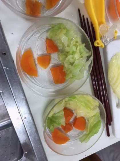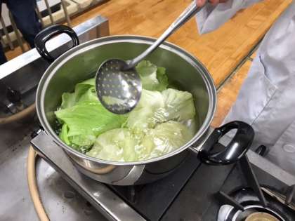 5年生は、家庭科の学習でゆで野菜サラダを作りました。
