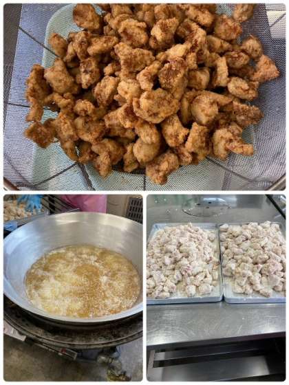 今日の献立は・みそカツ・じゃがいもと野菜の煮もの・焼きのり・ごはん・牛乳です。みそカツは、塩、こしょうで下味をつけた豚肉に、小麦粉と水を合わせた衣をつけ、パン粉をつけて、熱した菜種油で揚げます。八丁みそ、赤みそ、砂糖、みりんに湯を少しずつ加えて煮、水どきでんぷんでとろみをつけたみそだれをカツにかけます。調理員さんが1枚ずつ丁寧に衣をつけた手作りのカツなので、サクサクで美味しく児童に人気の献立です。