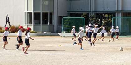 3年生は5時間目に運動場でサッカーをしました。日差しがきつく暑いくらいでした。子どもたちは元気いっぱいボールを蹴っていました。