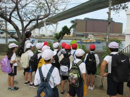 2年生はまず天保山公園に行き、渡船場を見学しました。渡船場で働く方にインタビューをした後、渡船に乗りました。次に、和菓子を作っている静月さんに行き、たくさん質問をしました。その後、ジーライオンミュージアムに行き、ヴィンテージ車を見せていただきました。最後に、港住吉神社に行きました。それぞれの場所で働いている方々に子どもたちは質問をし、多くのことを教わりました。お忙しい中、ご協力をいただき、ありがとうございました。