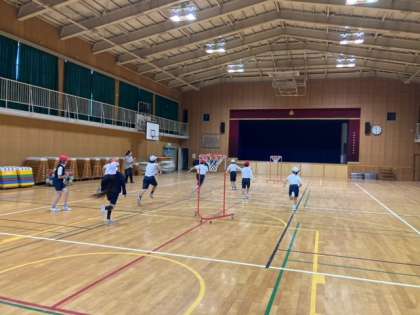 12月14日(木)4年生は体育館でセストボールをしました。セストボールは、ドリブルをせずにパスでボールをつなぎ、ゴールを目指すというルールです。子ども達は一生懸命ボールを追いかけたり、シュートをしたりして運動しました。