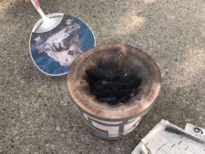 新聞を捻って火種にし、炭を入れ、上手に火を付けていましたよ。