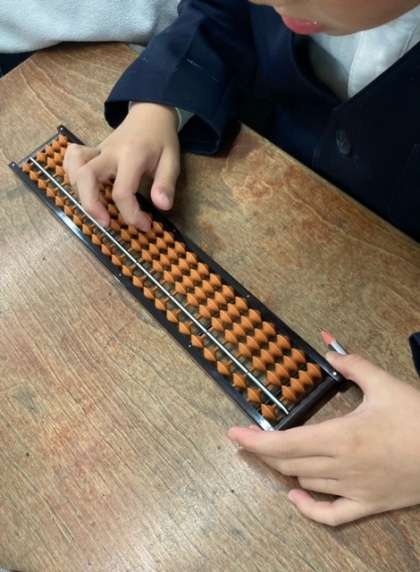 子ども達は1人ずつそろばんを持ち、繰り上がりのない足し算、繰り下がりのない引き算等を学習しました。