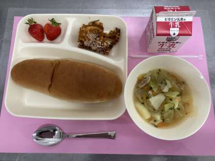 今日の給食に登場したいちごは、長崎県産の「ゆめのか」です。
