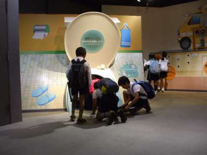 下水道科学館では家庭から出る汚水がどのようにしてきれいにされるのかを展示や実験を見ながら学習しました。