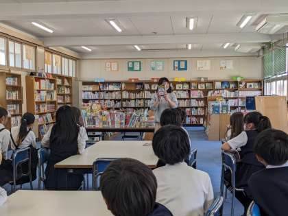 今日は1学期初めての図書の時間です。はじめに分類番号について図書司書の方から説明がありました。本もたくさん紹介してもらいました。4年生は話をよく聞いていました。児童の皆さんには、本をたくさん読んでほしいと思います。