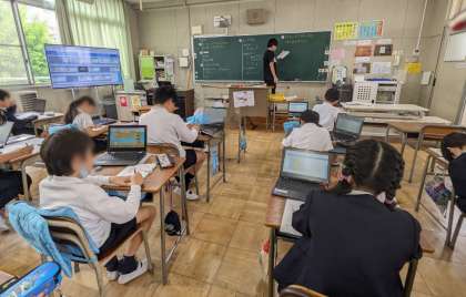 3桁−3桁の筆算の仕方をパソコンを使って学習していました。子どもたちはパソコンの操作がとても上手でした。練習問題がたくさんありましたが、がんばって計算していました。