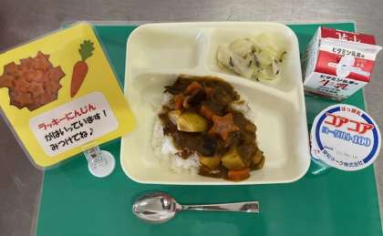 今日のカレーには、星型やハート型にカットしたにんじんも入っています。みんな見つけたかな?