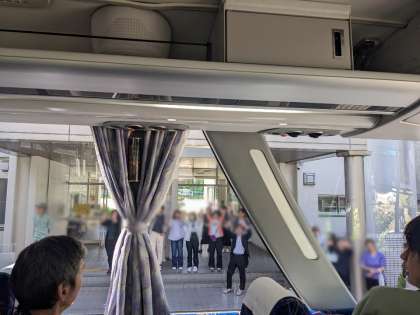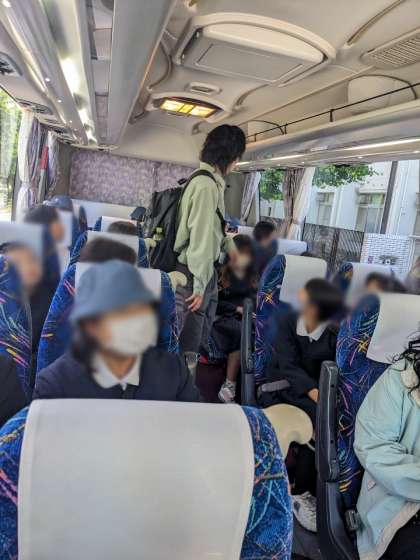 出発式がおわり、バスに乗り込みました。7時55分に無事バスが出発しました。南紀白浜方面に向かいます。