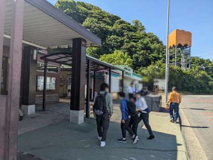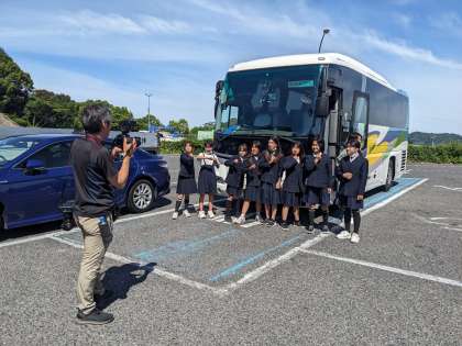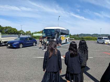 バスの中では音楽を聞いて盛り上がっています。