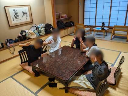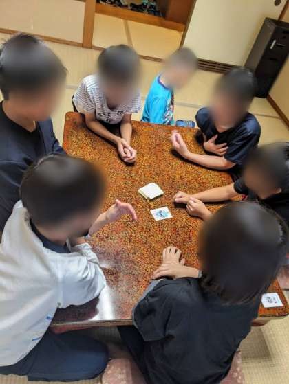 とても素敵な部屋で、お風呂の用意をしたり、カードゲームをしたりしてゆっくりしています。