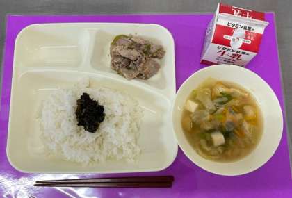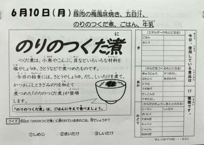 ごはんが進む献立で、はじめて食べた一年生もよく食べていました。