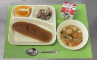 給食では、牛肉とピーマン、たけのこを炒め、砂糖やしょうゆ、オイスターソースなどで味付けしています。ピーマンがたくさん入っていましたが、好き嫌いせずよく食べていました。