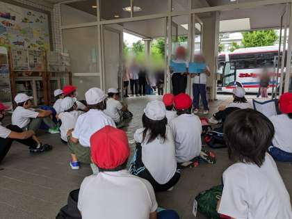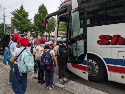 5年生全員で自然体験学習に出発しました。子どもたちは今日の日を楽しみにしていました。バスの中から見える船や建物に「すごーい」と感動しています。安全に気をつけて元気に明日帰ってくることができるように行ってきます!