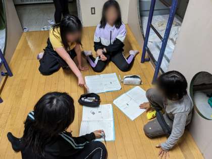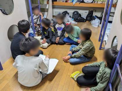 子どもたちは皆、元気です。今日一日を振り返った後は、歯磨きをして寝る準備です。キャンプファイヤーをする前まで雨が降っていましたが、キャンプファイヤーをする時には止み、無事に行うことができました。星空観察は雲で星が見えませんでした。