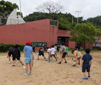 天気はくもりです。子どもたちは元気に体操をしました。今日もみんなと協力して楽しく活動することを確認しました。