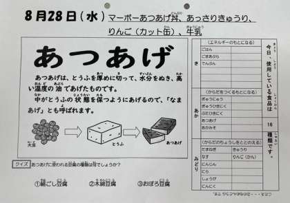 今日使用している食品は16種類です。栄養満点の献立でした。