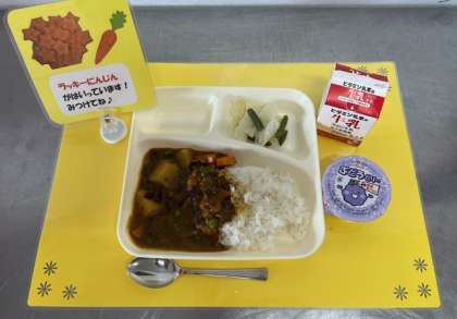 今日は大好評の献立で、「ラッキーにんじんが入ってたぁ〜」、「めっちゃおいしい〜」と喜ぶ声がたくさん聞かれました。
