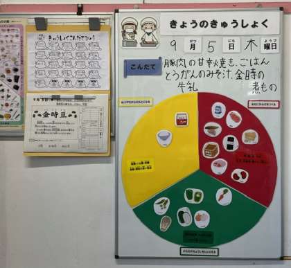 金時豆は、いんげん豆のなかまです。色は、濃い赤むらさき色をしています。たんぱく質のほか、炭水化物、おなかの調子を整える食物繊維などを多く含んでいます。