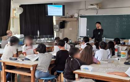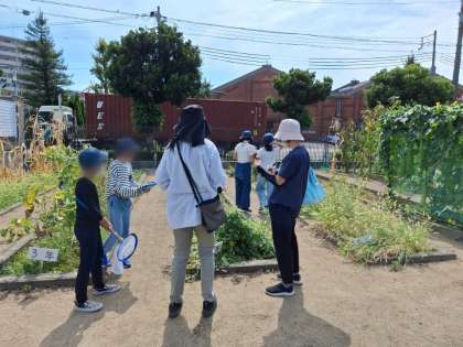 環境局から10人の方が来られました。子どもたちは校庭にいる生き物について調べました。今回は2回目で、1回目に学んだことを子どもたちはよく覚えていました。子どもたちが生き物を見つけるとすぐに環境局の方がその生き物の名前や特徴を教えてくださいました。大変勉強になりました。アゲハは、4月〜5月に生まれたものと6月〜9月に生まれたものとでは大きさや色が違うことを教えてもらいびっくりしていました。子どもたちが主体的に活動していたとほめていただきました。