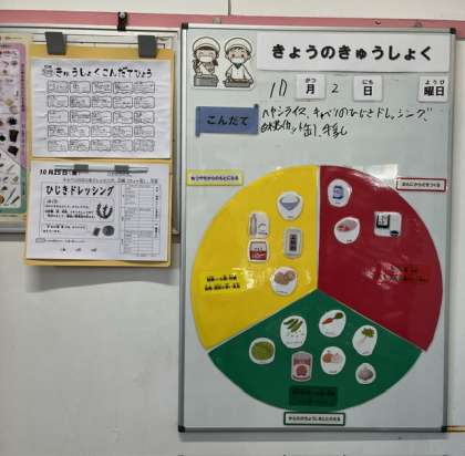 ハヤシライスは、児童に大人気の献立です。ラッキーにんじんが入っていて、みんな喜んで食べていました。