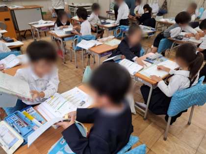 14−8の計算の仕方を考えました。自分の考えをペアで伝え合いました。そして、一人が前に出て自分の考えをみんなに伝え、もう一人が、その考えを黒板に書きました。わかりやすく伝えることができ、とてもすばらしかったです。