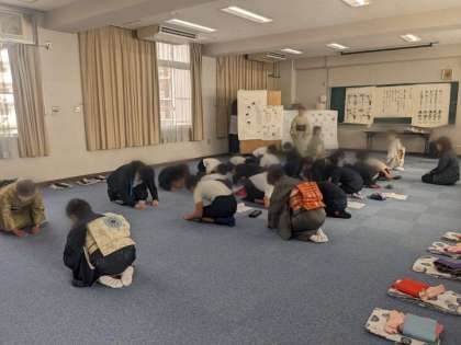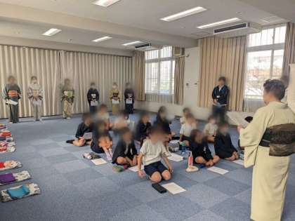 2・3時間目に伝統文化の1回目がありました。7人の講師の先生が来てくださり、マナーや着付けを教えてくださいました。手伝ってもらいながら浴衣を自分で着て、子どもたちはとてもうれしそうでした。来週も楽しみです。