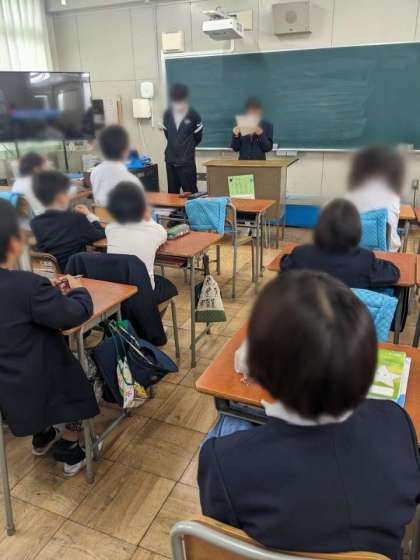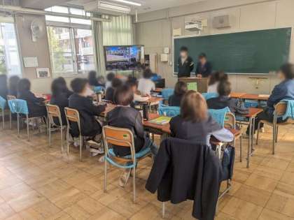 朝の時間に築港中学校の生徒会の方が来てくれました。5年生にクラブ紹介の動画を見せてくれ、築港中学校のクラブ活動の特色を紹介してくれました。