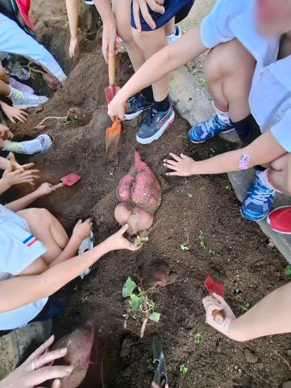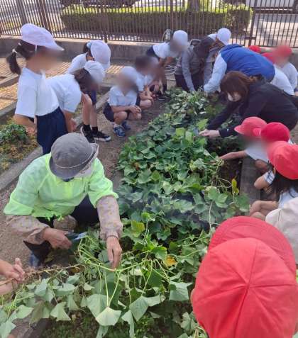 2年生が大事に育てたさつまいもを本日収穫しました。地域の方がお手伝いに来てくださいました。子どもたちは傷つけないように丁寧に掘っていました。顔ほどの大きさがあるとても大きなさつまいもがとれました。2年生は、最初と最後に地域の方にお礼の気持ちを伝えることができ、とても素晴らしかったです。食べるのが楽しみですね。