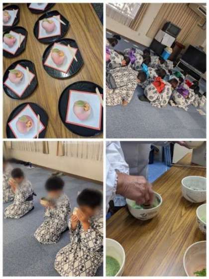 全4回の最終回でした。浴衣を自分たちで着て、静月さんの山茶花というお菓子とたてていただいたお茶をいただきました。礼儀作法を身につけ、文化を学び、日本の古くから伝わるよさを感じることができました。講師の先生方、ありがとうございました。