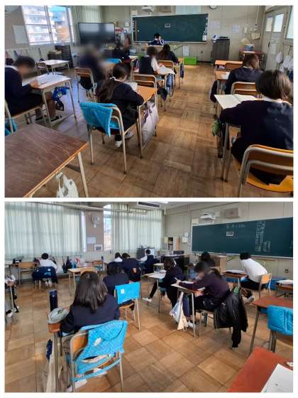 2時間目は国語、3時間目は社会、4時間目は質問に答えました。子どもたちは真剣に問題文を読んで考えていました。時間が余ると何度も見直しました。集中していたので、とても疲れた様子でした。今日はとても暖かく、休み時間は運動場に出て遊んだり、日向ぼっこをしたりして気分転換をしていました。よくがんばりました。また明日もがんばりましょう。
