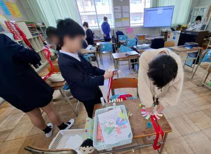 6年生の卒業式が近づいてきました。3年生はこれまでの感謝の気持ちを込めて6年生にプレゼントを作っていました。卒業を祝う会で渡します。丁寧に絵を描いたり、メダルを作ったりそれぞれが熱心に活動していました。