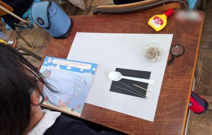 海遊館から出前授業に来ていただきました。築港小学校に毎年この時期に来ていただいています。ちりめんじゃこの中にいろいろな生き物が混じっていて、どんな生き物がいるかを見つけました。子どもたちは沢山の種類の生き物を発見していました。