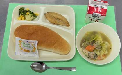 わかさぎは、海で成長して卵を産む時期に川を登ってくるものと、湖にすんでいるものがいます。骨が柔らかく、丸ごと食べることができるので、カルシウムをたくさんとることができます。今日の給食では、衣をつけたフライにしています。