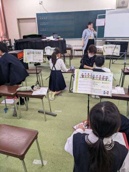 4年生は音楽、音楽室で音楽ファイル作りをしていました。