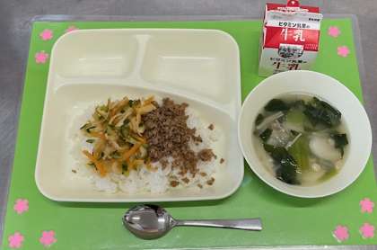 今日のビビンバの具は、コチジャンで味付けした肉と切干しだいこんなどで作ったナムルです。