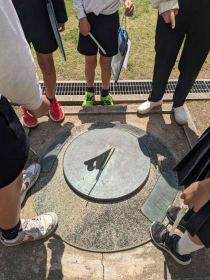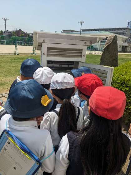 百葉箱とは何か実際に中を見たり、日時計の復習をしたりもしました。