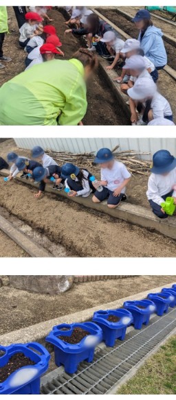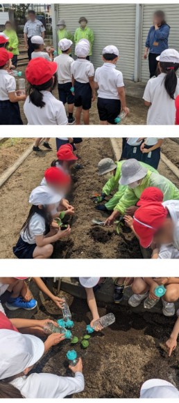 地域の方が4名来てくださり、学習園での種まきや苗植えを一緒にしてくださいました。