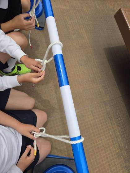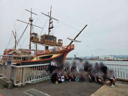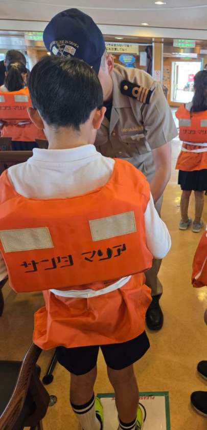 写真撮影をしたり、船長さんのお話を伺ったり、ロープワークや救命胴衣の講習を受けたりしました。